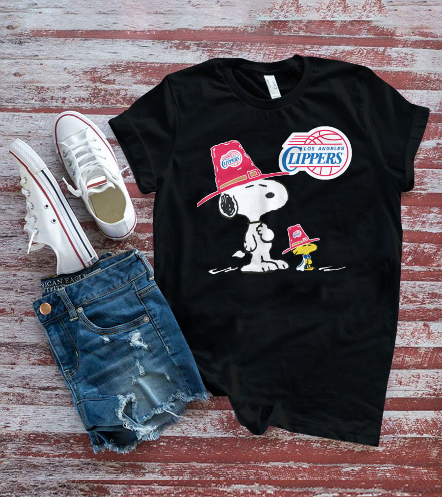 Los Angeles Clippers Snoopy With Woodstock In Team Hats T-Shirt