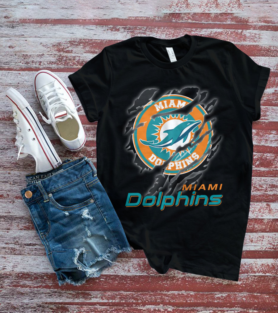 Miami Dolphins Logo With Claw Marks T-Shirt