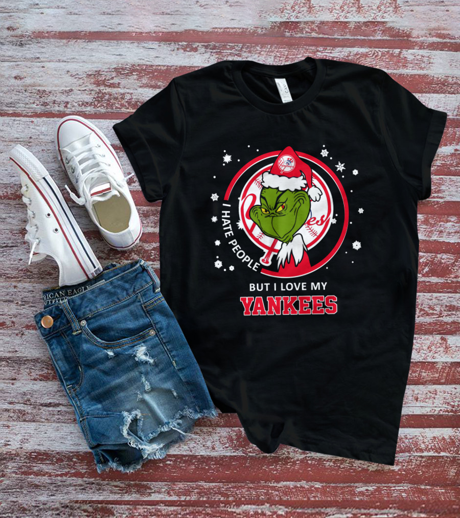 I Hate People But I Love My New York Yankees Grinch Holiday Red Circle Snowflake T-Shirt
