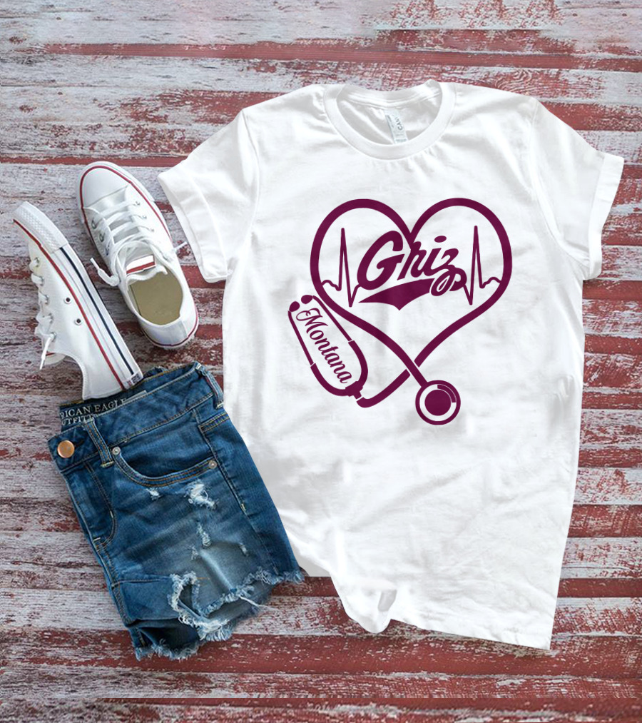 Griz Heartbeat Stethoscope Montana Nurse T-Shirt