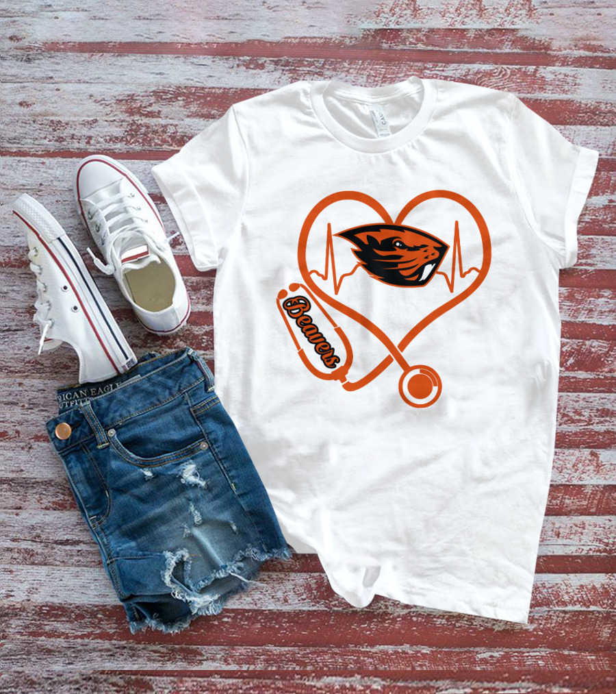 Beavers Nurse Love Oregon State Heartbeat T-Shirt