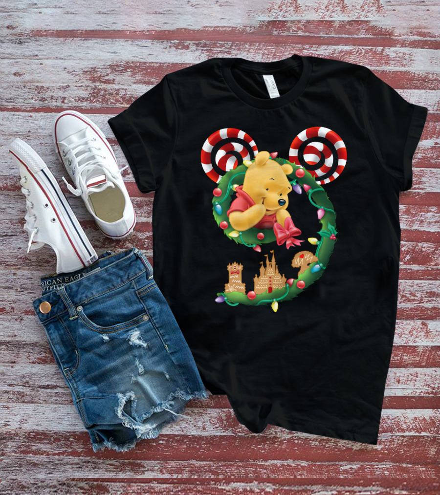 Winnie Pooh Christmas Wreath With Candy Canes And Holiday Castle Cookies T-Shirt