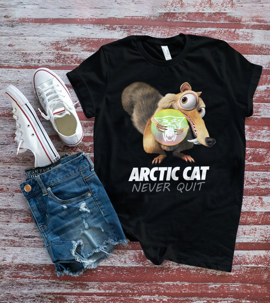 ARCTIC CAT NEVER QUIT Cartoon Character Holding T-Shirt