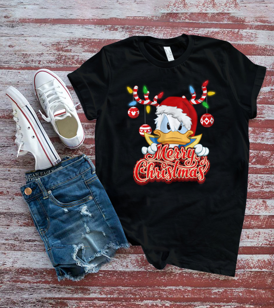 Merry Christmas Donald Wearing Santa Hat And Reindeer Antlers T-Shirt