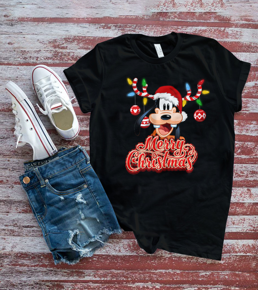Merry Christmas Goofy Santa Hat Lights Antlers T-Shirt