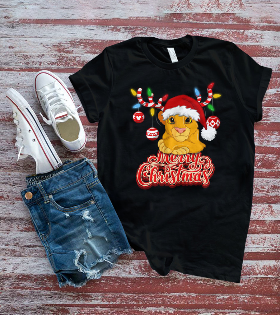 Simba Merry Christmas Santa Hat And Reindeer Antlers T-Shirt