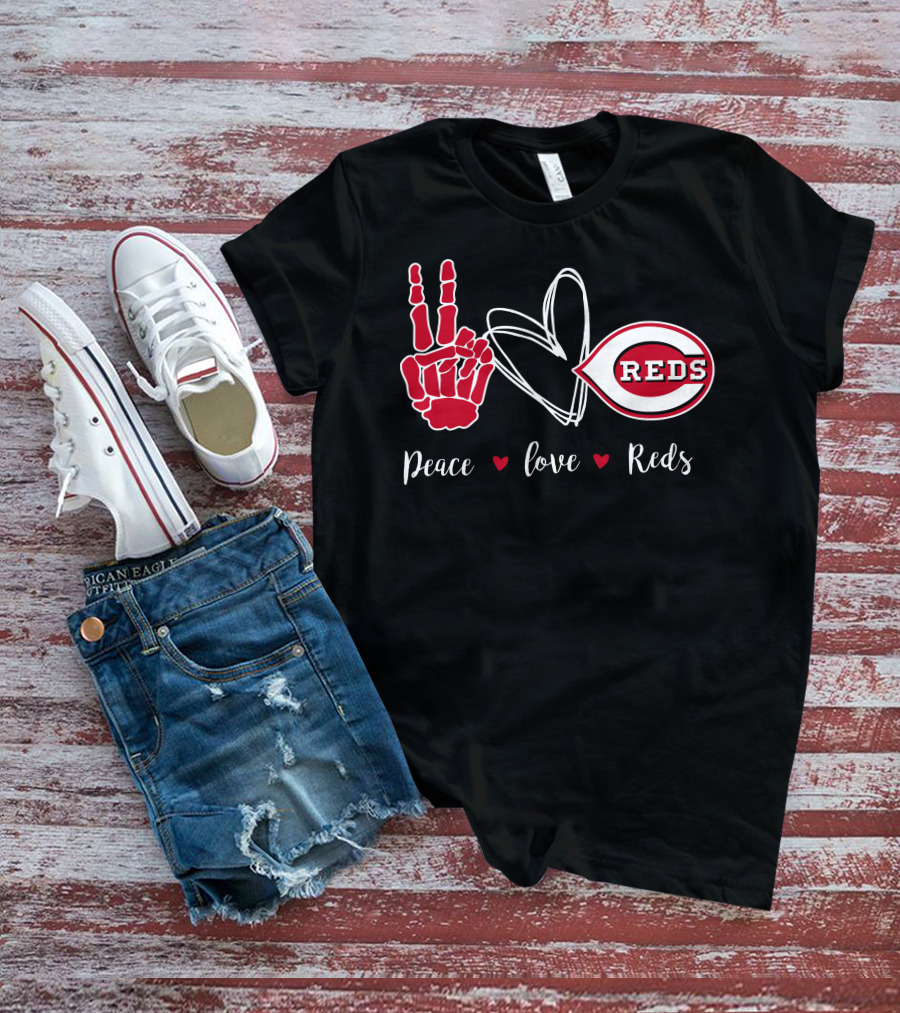 Peace Love Reds Cincinnati Baseball T-Shirt