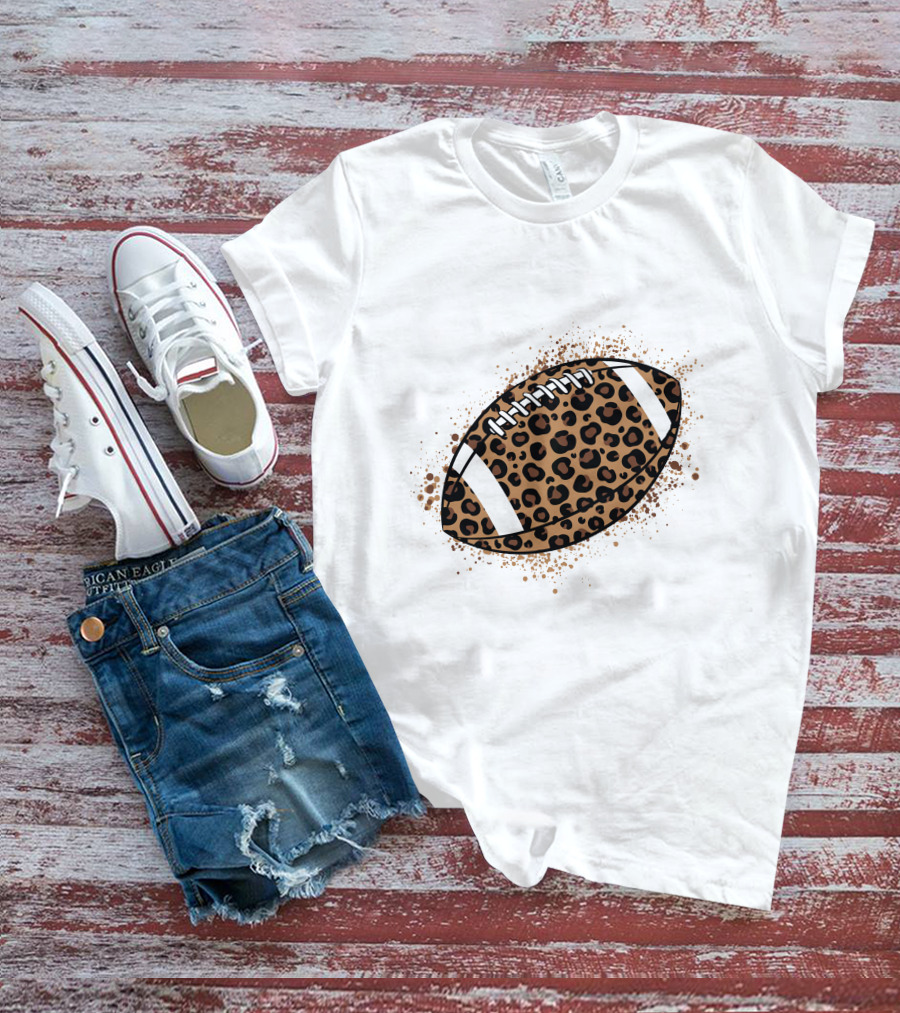 The Leopard Print American Football Ball Shirt offers a regular fit. Made from 100% ring-spun cotton that is pre-shrunk to help maintain size and shape after washing. Features reinforced construction details for durability. Available in U.S. standard sizes S-5XL to accommodate various body types.