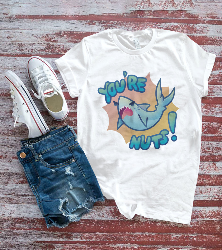 The You're Nuts Shark Cartoon Shirt offers a regular fit. Made from 100% ring-spun cotton that is pre-shrunk to help maintain size and shape after washing. Features reinforced construction details for durability. Available in U.S. standard sizes S-5XL to accommodate various body types.