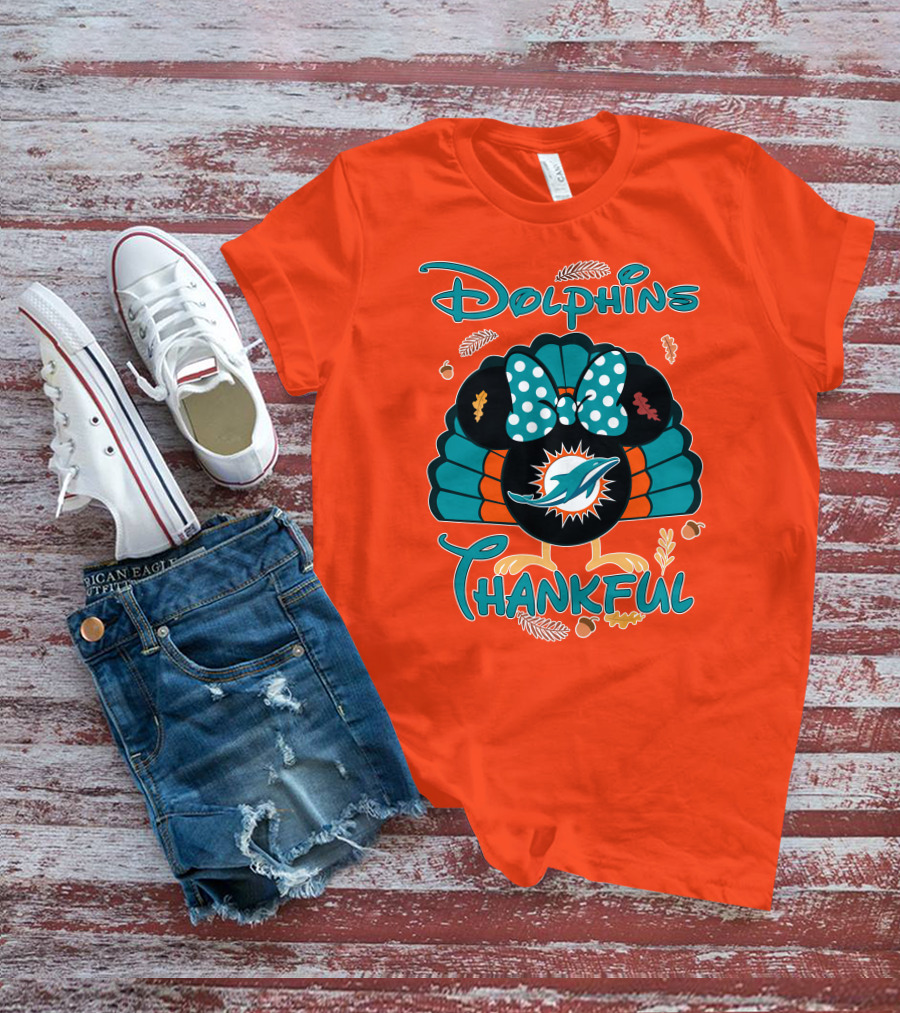 The Miami Dolphins Thankful Minnie Thanksgiving Shirt offers a regular fit. Made from 100% ring-spun cotton that is pre-shrunk to help maintain size and shape after washing. Features reinforced construction details for durability. Available in U.S. standard sizes S-5XL to accommodate various body types.