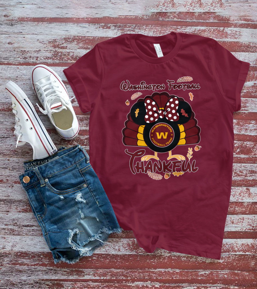 Washington Football Team Minnie Thankful Thanksgiving T-Shirt