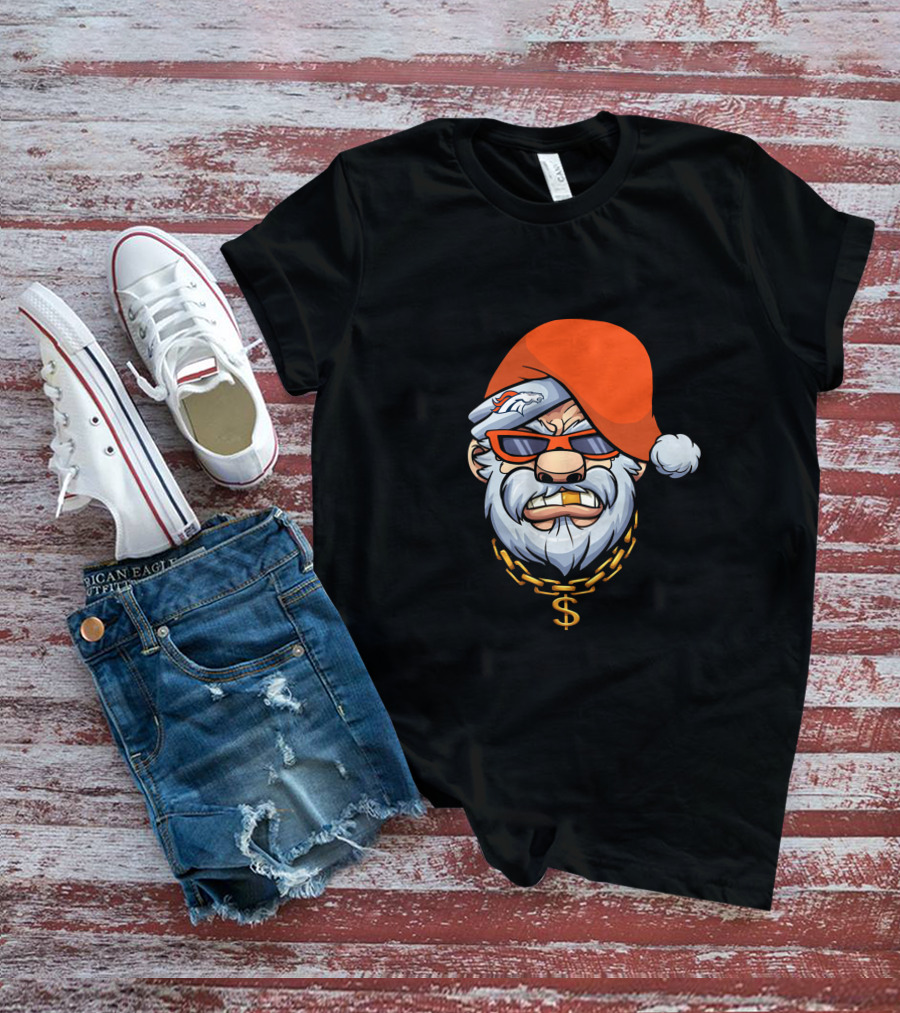 Broncos Gangster Santa With Orange Hat And Chain T-Shirt