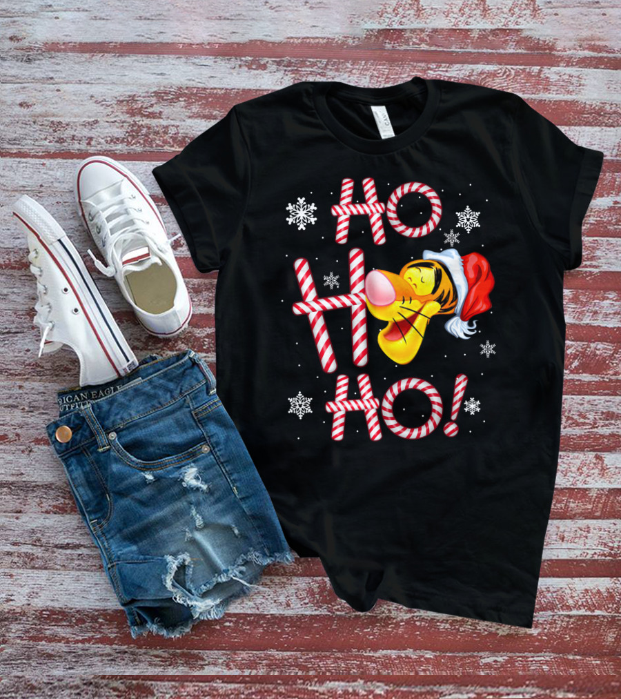 Tigger Ho Ho Ho Santa Hat Candy Cane Snowflakes T-Shirt
