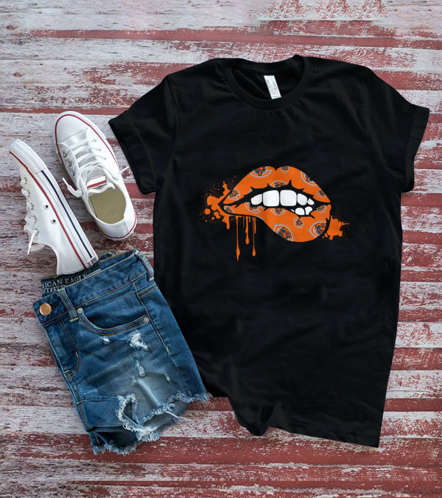 Dripping Lips With Chicago Bears Logo T-Shirt