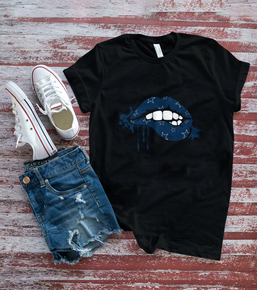 The Dripping Lips Blue Star Pattern Cowboys Shirt offers a regular fit. Made from 100% ring-spun cotton that is pre-shrunk to help maintain size and shape after washing. Features reinforced construction details for durability. Available in U.S. standard sizes S-5XL to accommodate various body types.