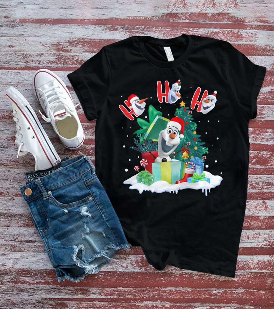 Olaf Christmas Santa Hat Presents Snowman Festive Holiday Tree Ho Ho Ho T-Shirt