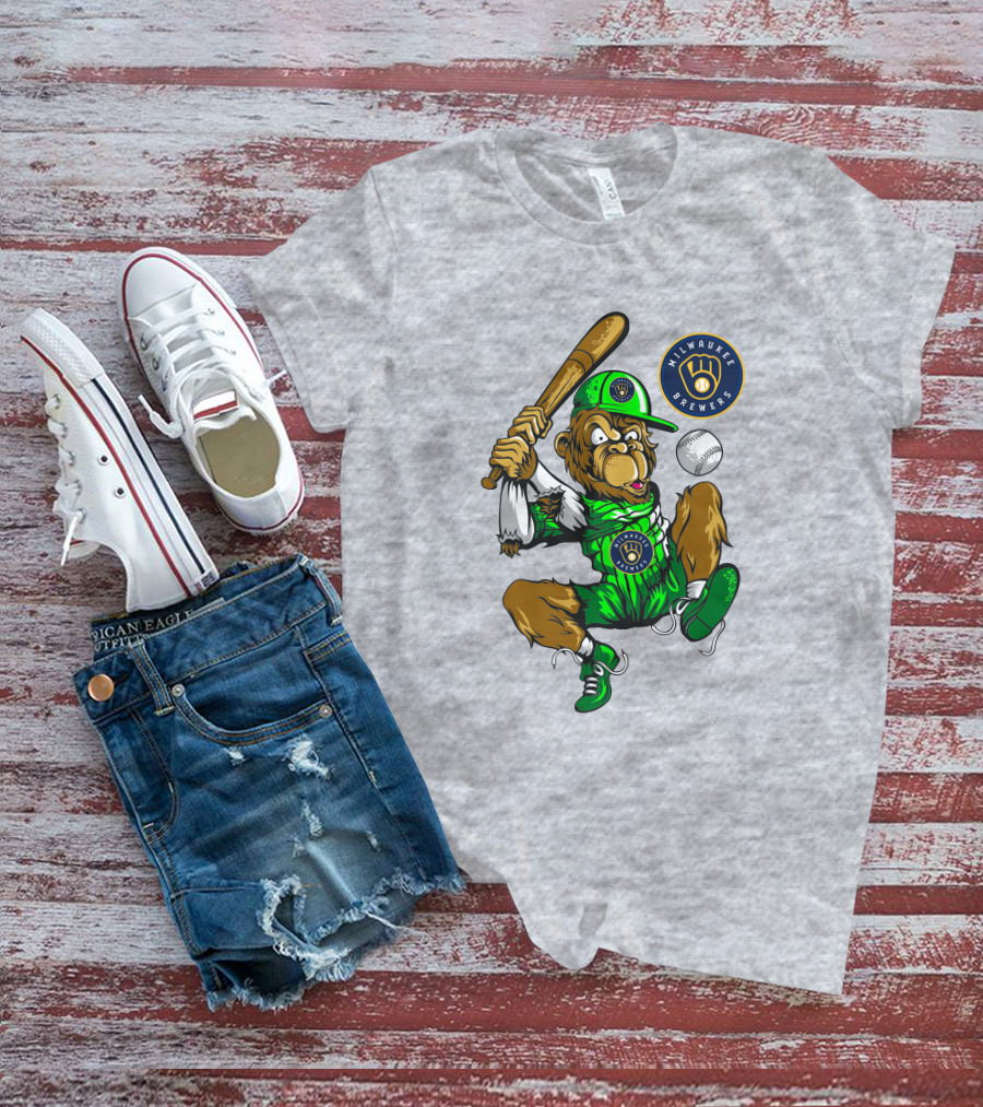 Milwaukee Brewers Baseball Mascot Swinging Bat In Green Uniform T-Shirt