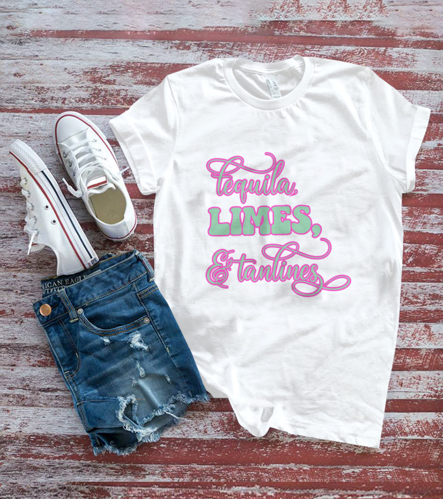 The Tequila Limes and Tan Lines Shirt offers a regular fit. Made from 100% ring-spun cotton that is pre-shrunk to help maintain size and shape after washing. Features reinforced construction details for durability. Available in U.S. standard sizes S-5XL to accommodate various body types.