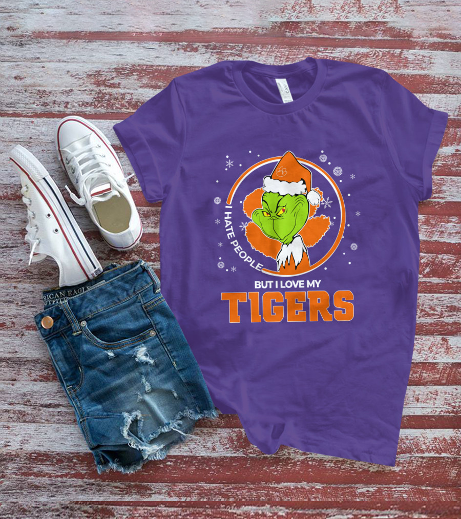 The Christmas Grinch Santa I Hate People But I Love My Tigers Shirt offers a regular fit. Made from 100% ring-spun cotton that is pre-shrunk to help maintain size and shape after washing. Features reinforced construction details for durability. Available in U.S. standard sizes S-5XL to accommodate various body types.