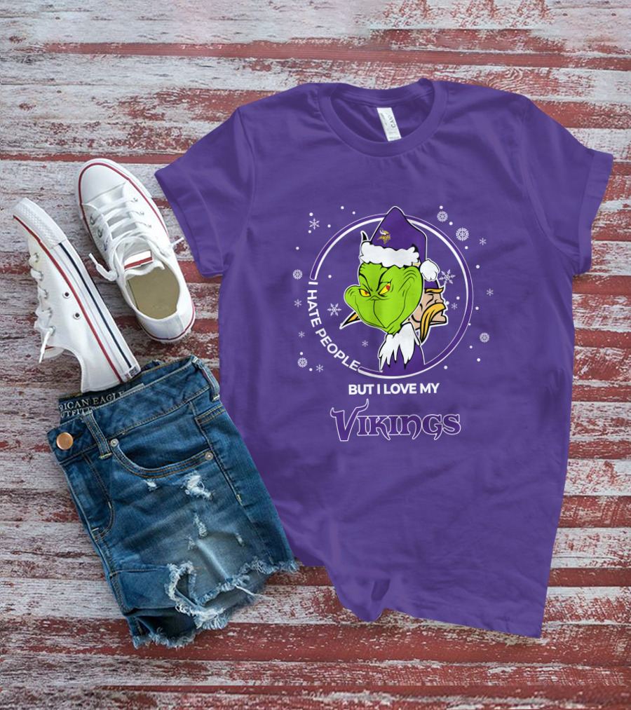 Christmas Grinch Santa I Hate People But I Love My Vikings T-Shirt