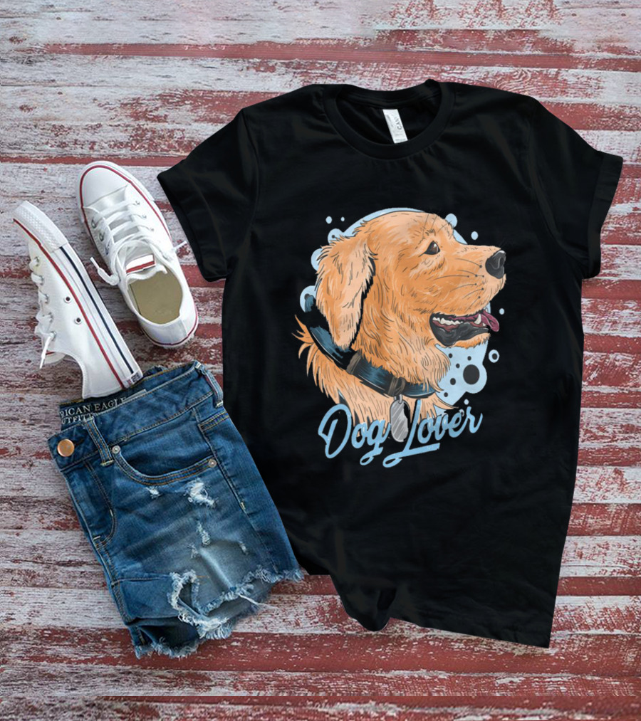 Dog Lover Happy Golden Retriever Head With Collar And Blue Bubbles T-Shirt