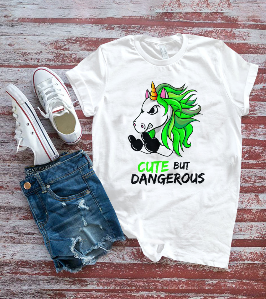 Cute But Dangerous Unicorn Green Hair T-Shirt