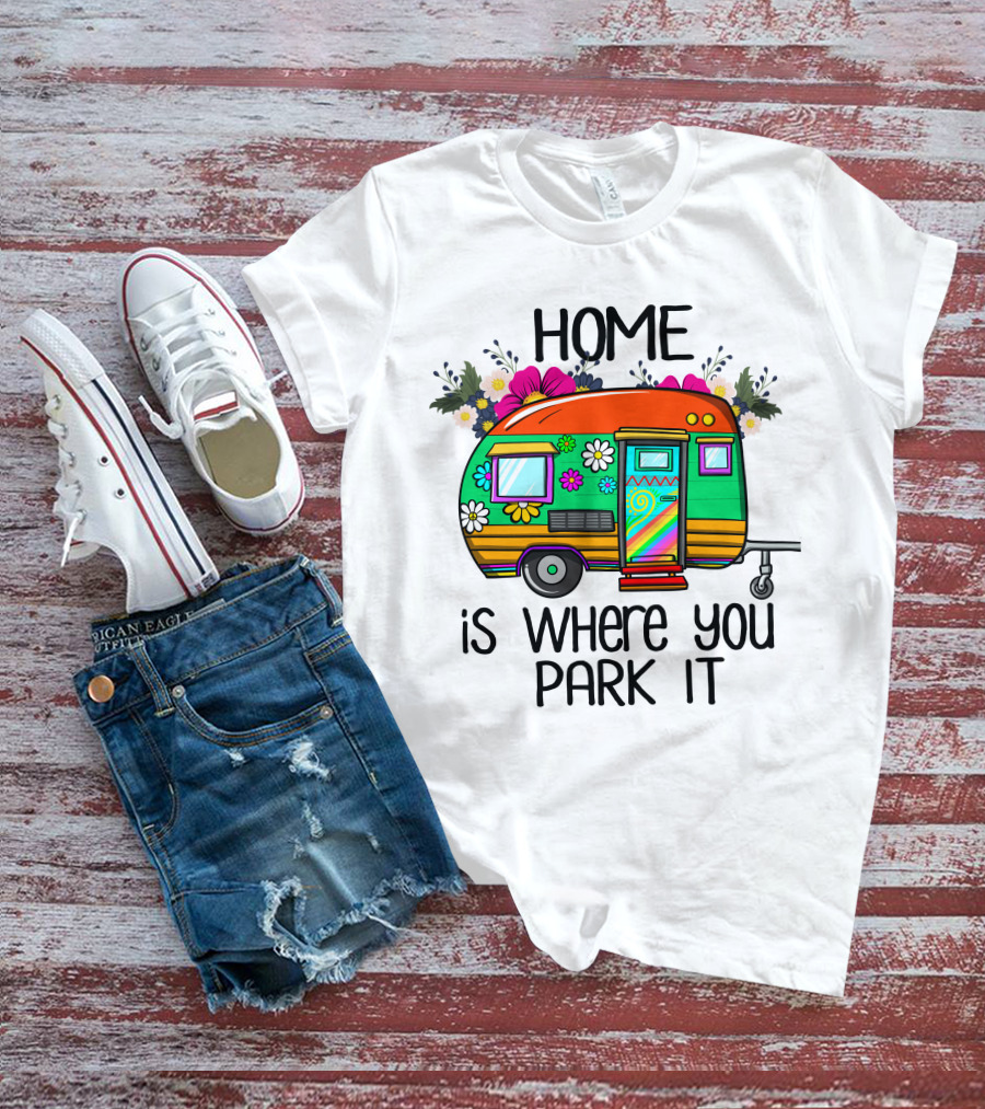 Home Is Where You Park It Colorful Floral Camper With Flowers T-Shirt