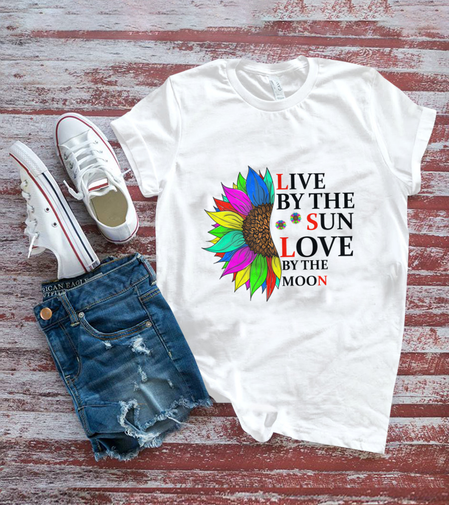 The Live By The Sun Love By The Moon Sunflower Colorful Shirt offers a regular fit. Made from 100% ring-spun cotton that is pre-shrunk to help maintain size and shape after washing. Features reinforced construction details for durability. Available in U.S. standard sizes S-5XL to accommodate various body types.
