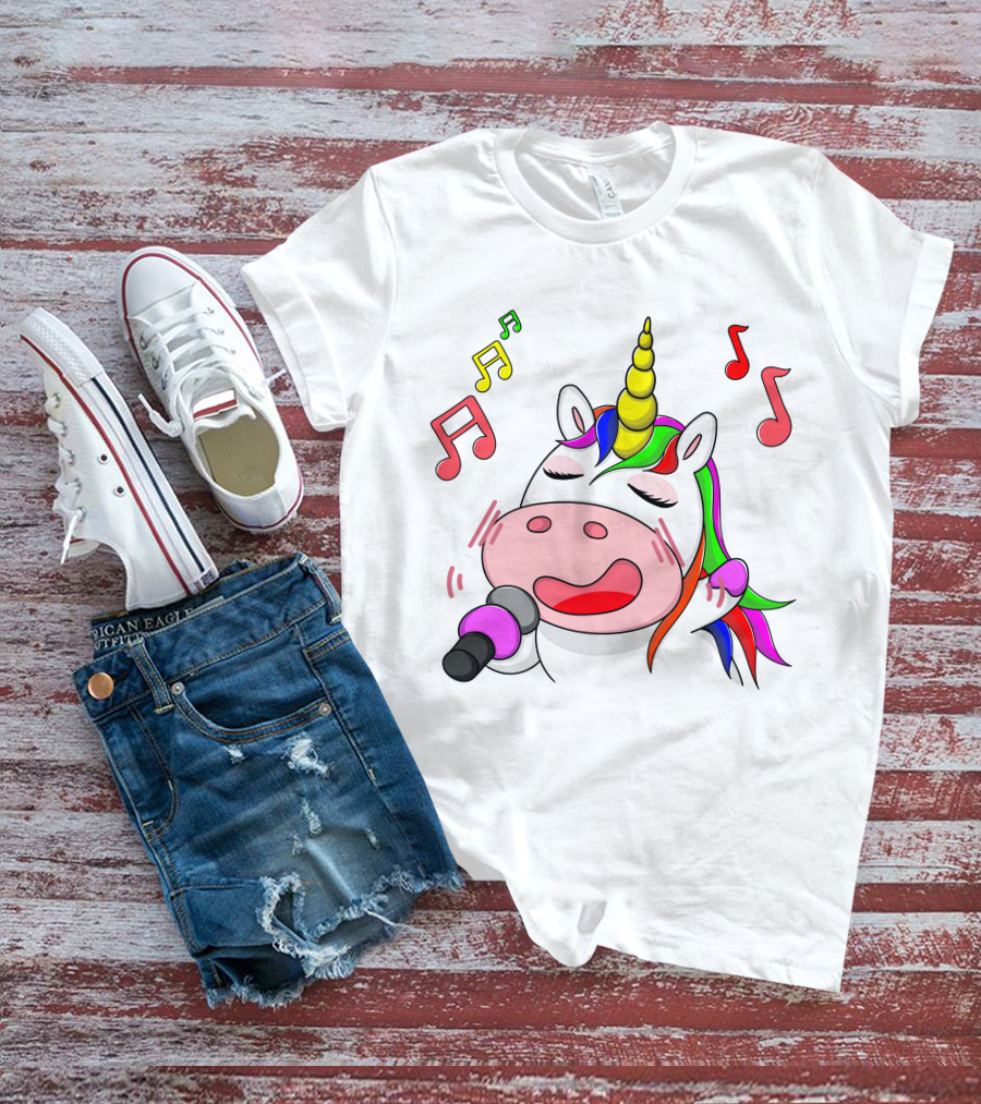 Unicorn Singing With Colorful Microphone And Musical Notes T-Shirt