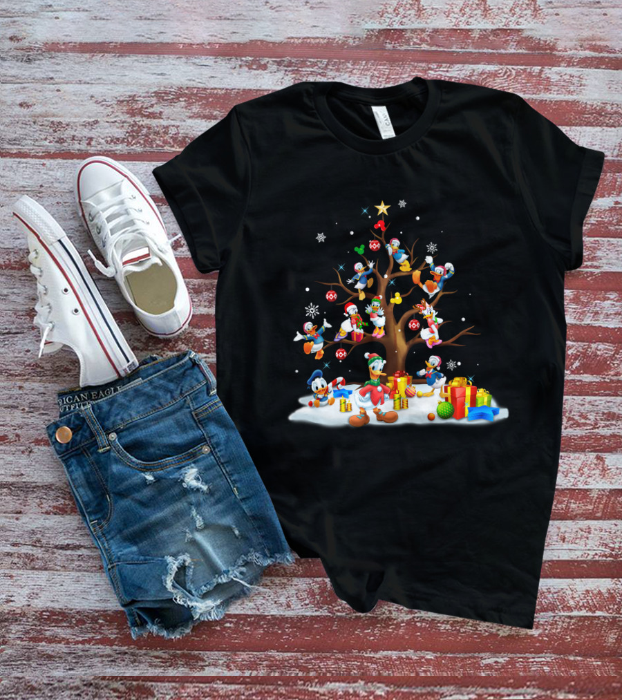 Donald Daisy Christmas Tree With Disney Characters And Snowflakes T-Shirt