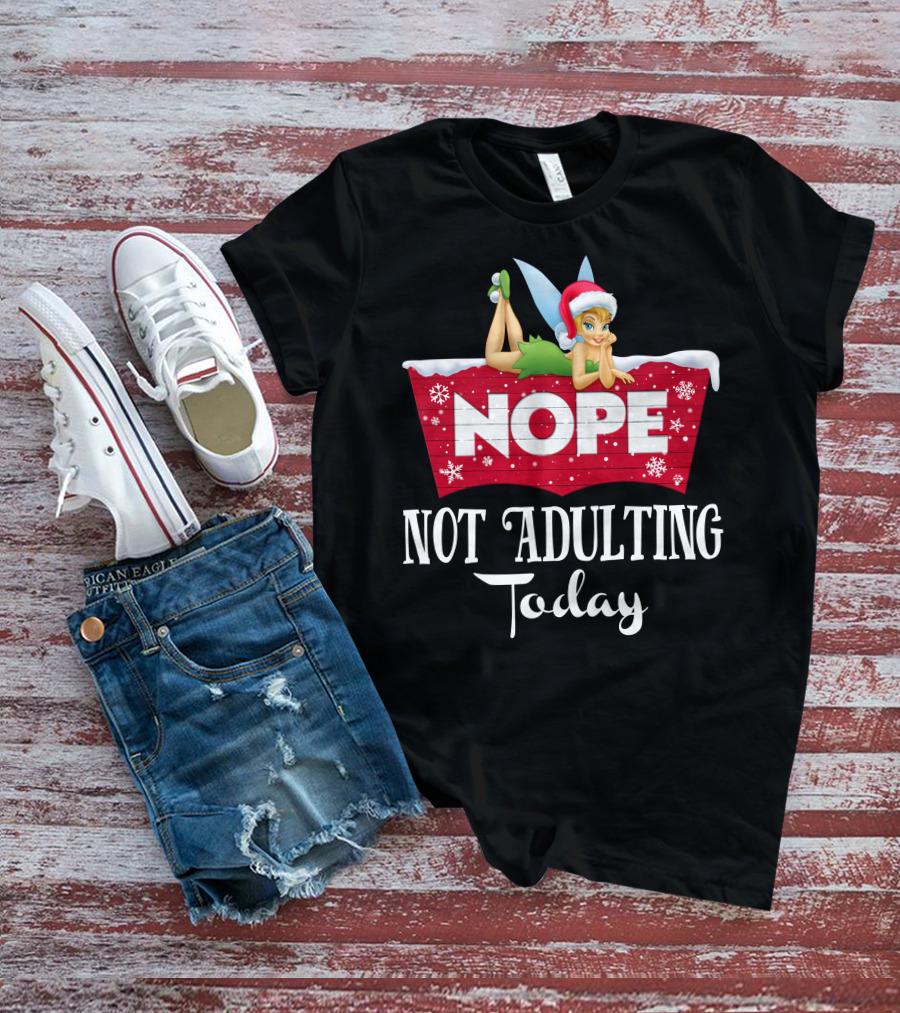 Nope Not Adulting Today Tinkerbell Santa Hat Snowflakes T-Shirt