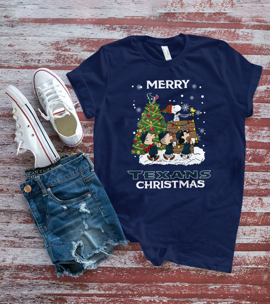 Merry Texans Christmas Peanuts Tree With Snoopy And Houston T-Shirt
