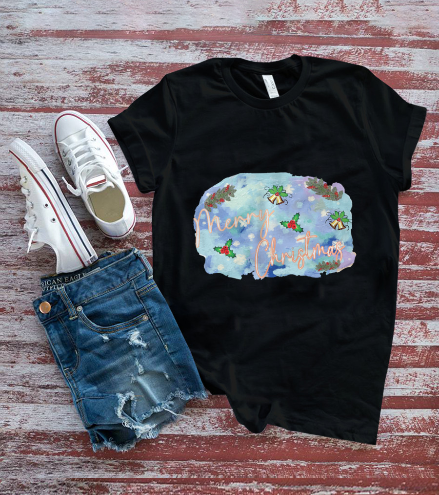 Merry Christmas Watercolor Holly And Bells T-Shirt