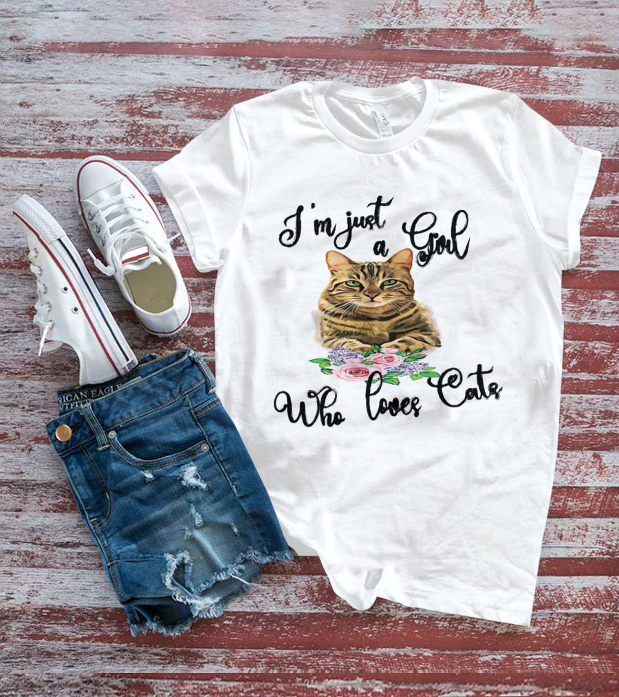 I'm Just A Girl Who Loves Cats With Floral Cat T-Shirt