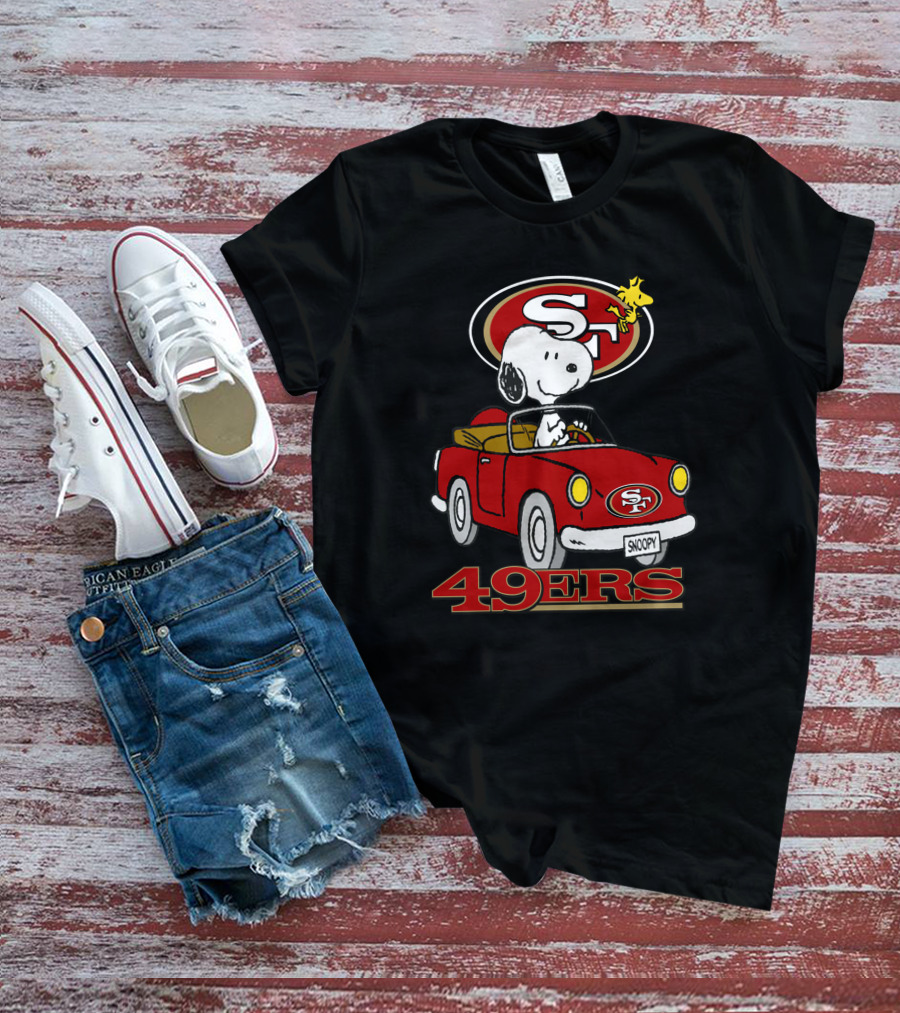 San Francisco 49ers Snoopy Driving Car With Woodstock T-Shirt