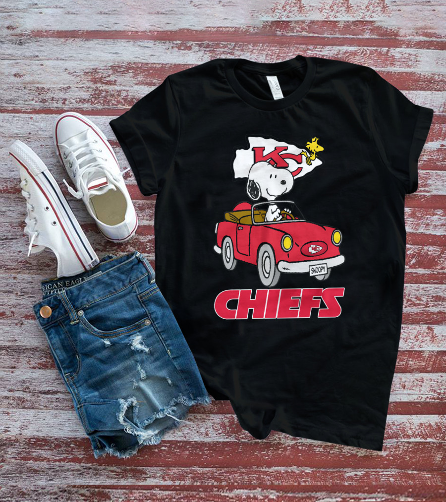 Chiefs Snoopy Driving With KC Flag T-Shirt