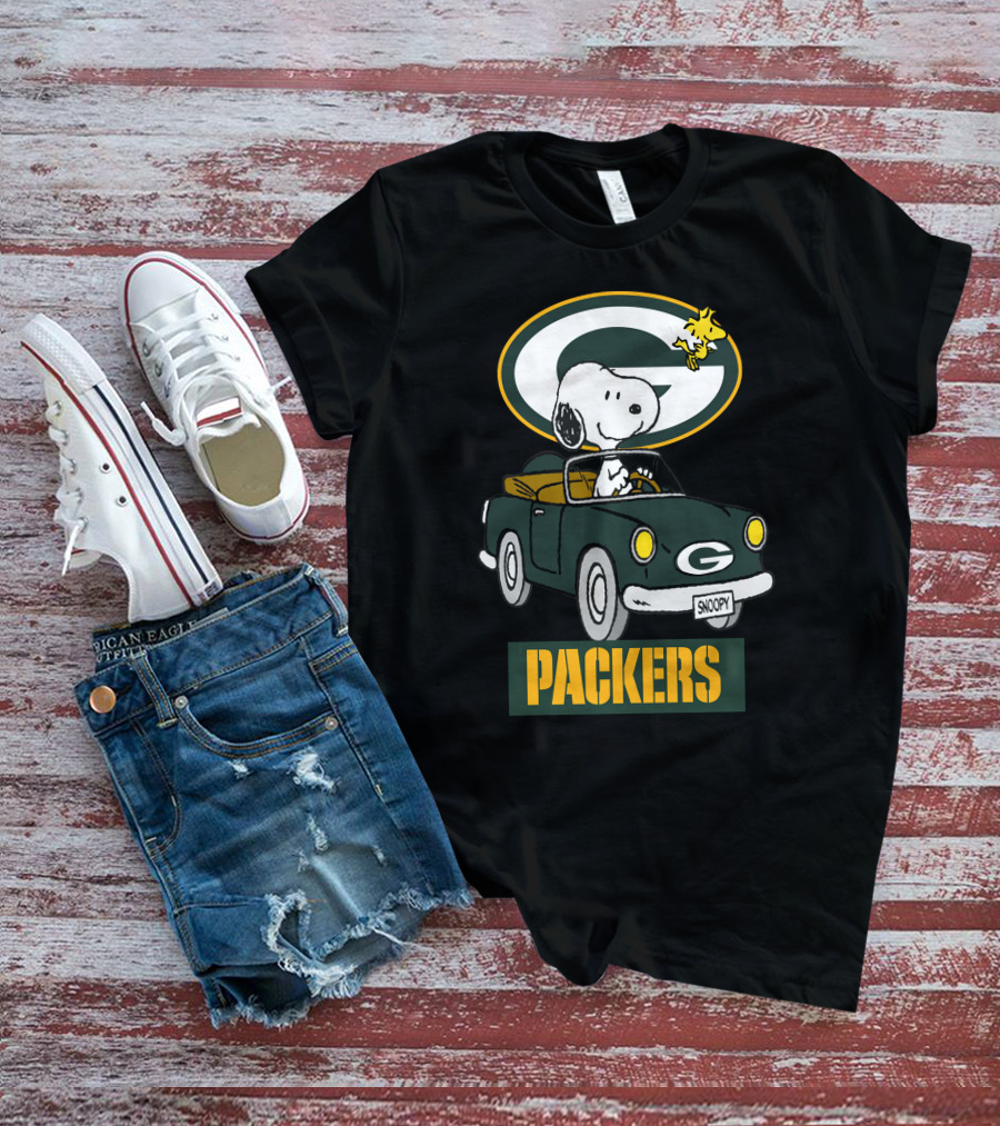 Packers Snoopy Driving Car With Woodstock And Packers T-Shirt