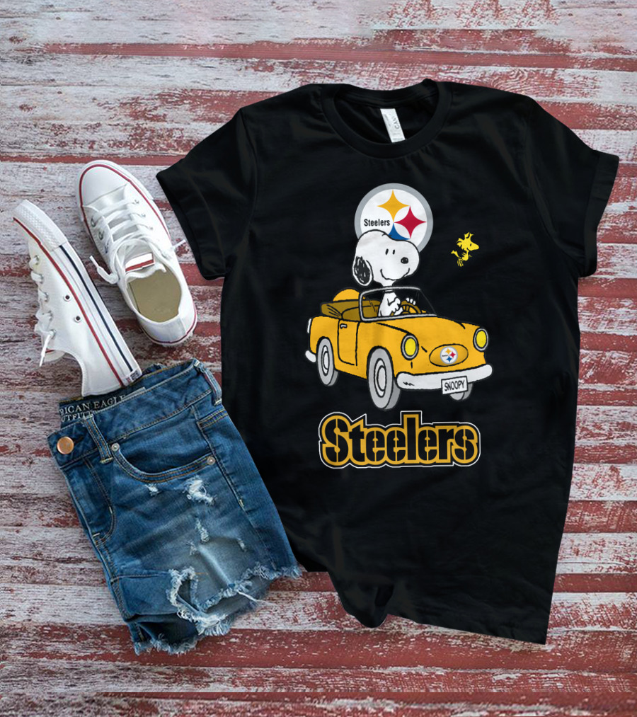 Steelers Snoopy Driving With Woodstock In Yellow Car T-Shirt
