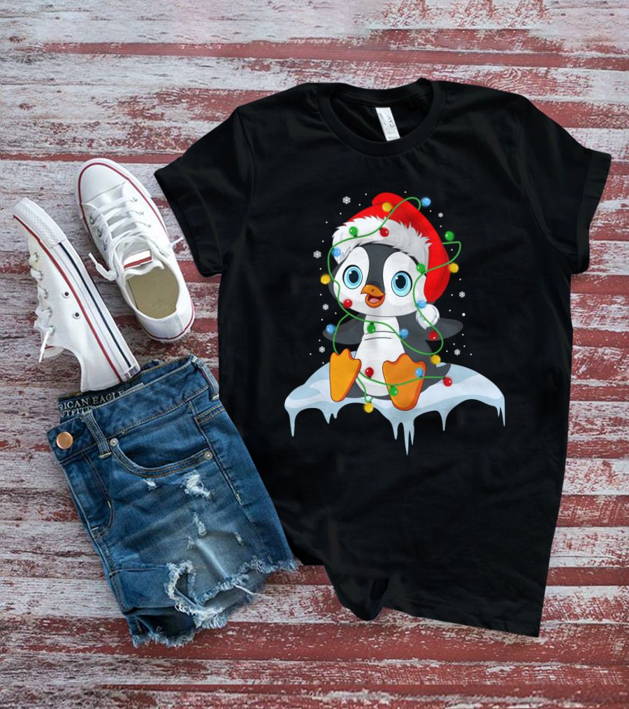Baby Penguin Santa Christmas Lights Snowflakes T-Shirt
