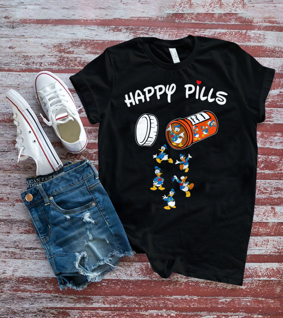 The Happy Pills Donald Duck Shirt offers a regular fit. Made from 100% ring-spun cotton that is pre-shrunk to help maintain size and shape after washing. Features reinforced construction details for durability. Available in U.S. standard sizes S-5XL to accommodate various body types.