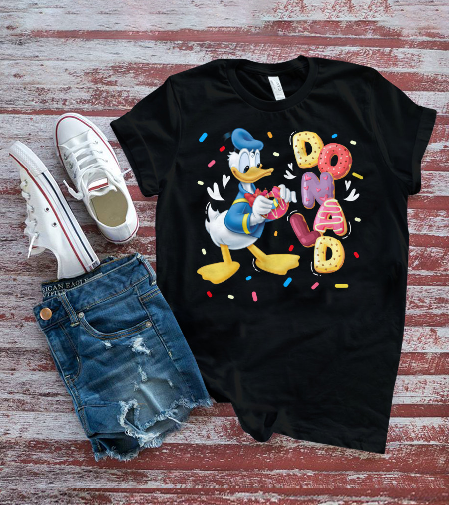 Donald Duck With Colorful Donut Letters And Sprinkles T-Shirt