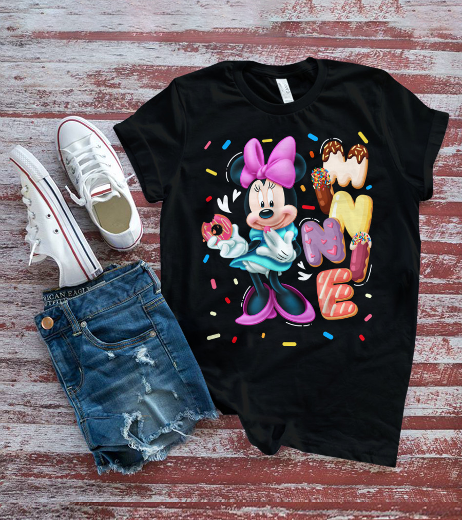 The Minnie Donut And Sprinkles Theme Shirt offers a regular fit. Made from 100% ring-spun cotton that is pre-shrunk to help maintain size and shape after washing. Features reinforced construction details for durability. Available in U.S. standard sizes S-5XL to accommodate various body types.