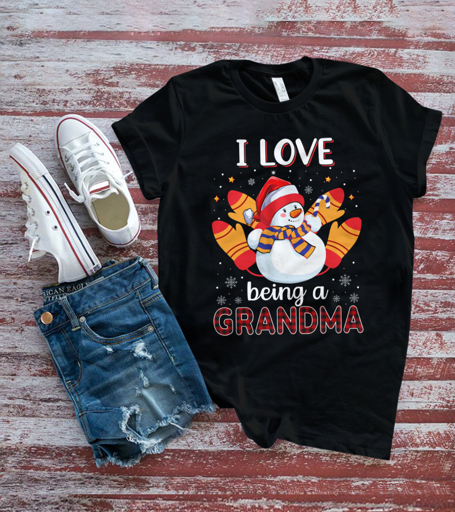I Love Being A Grandma Snowman With Mittens And Scarf Christmas T-Shirt