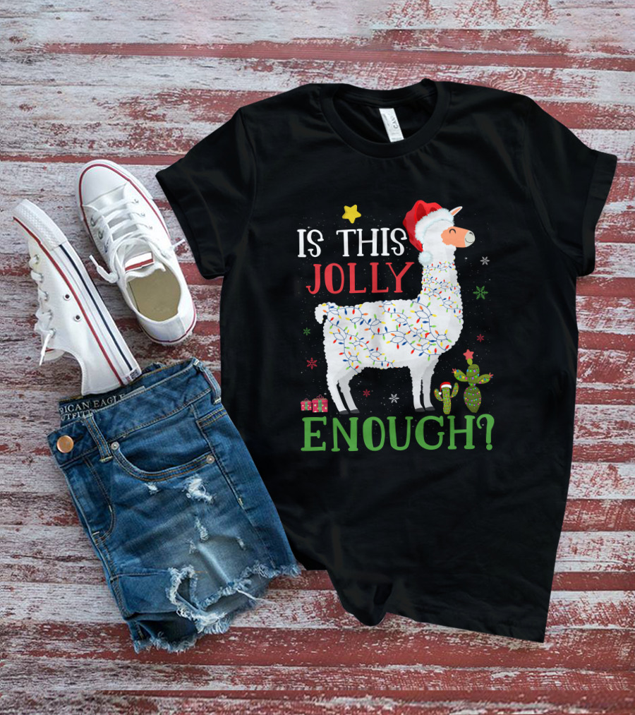 Is This Jolly Enough Christmas Lights Llama Santa Hat T-Shirt