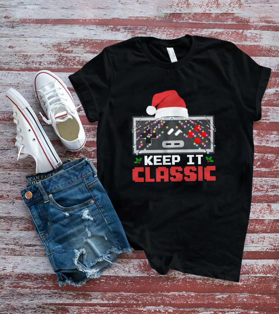 Keep It Classic Christmas Day Retro Controller Santa Hat Lights T-Shirt