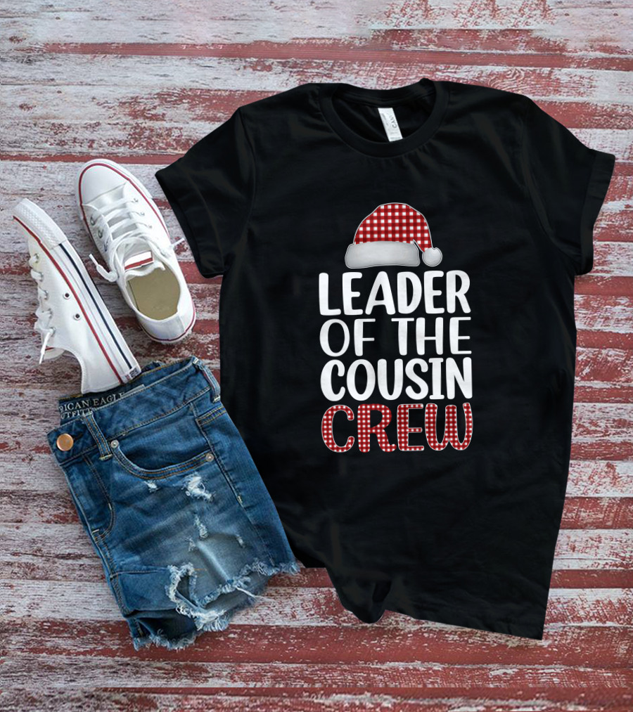 Leader Of The Cousin Crew Christmas Santa Hat Plaid T-Shirt