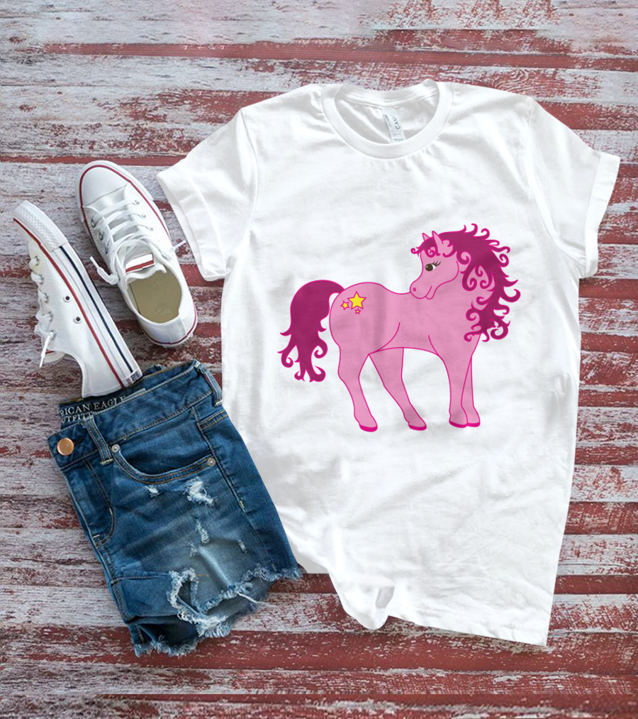 The Cute Pink Pony with Curly Mane and Star Markings Shirt offers a regular fit. Made from 100% ring-spun cotton that is pre-shrunk to help maintain size and shape after washing. Features reinforced construction details for durability. Available in U.S. standard sizes S-5XL to accommodate various body types.