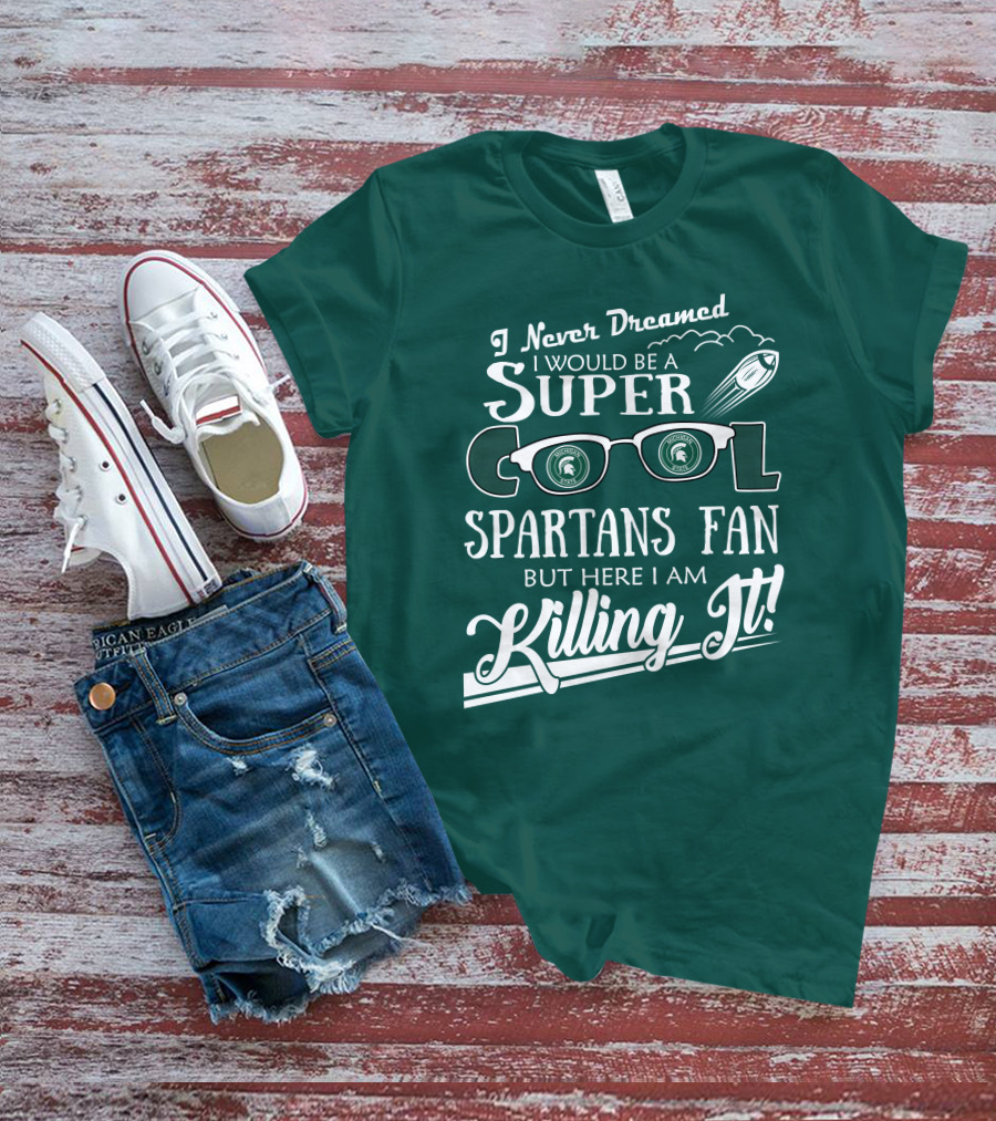 The I Never Dreamed I Would Be a Super Cool Michigan State Spartans Fan but Here I Am Killing It Shirt offers a regular fit. Made from 100% ring-spun cotton that is pre-shrunk to help maintain size and shape after washing. Features reinforced construction details for durability. Available in U.S. standard sizes S-5XL to accommodate various body types.