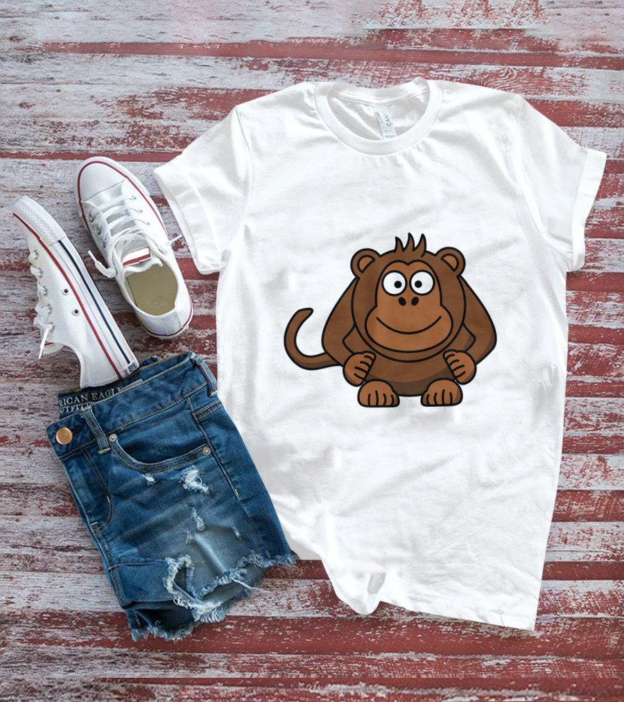 Cartoon Monkey Illustration Brown Playful Character T-Shirt