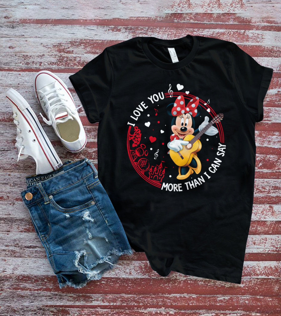 I Love You More Than I Can Say Minnie Mouse Playing Guitar T-Shirt